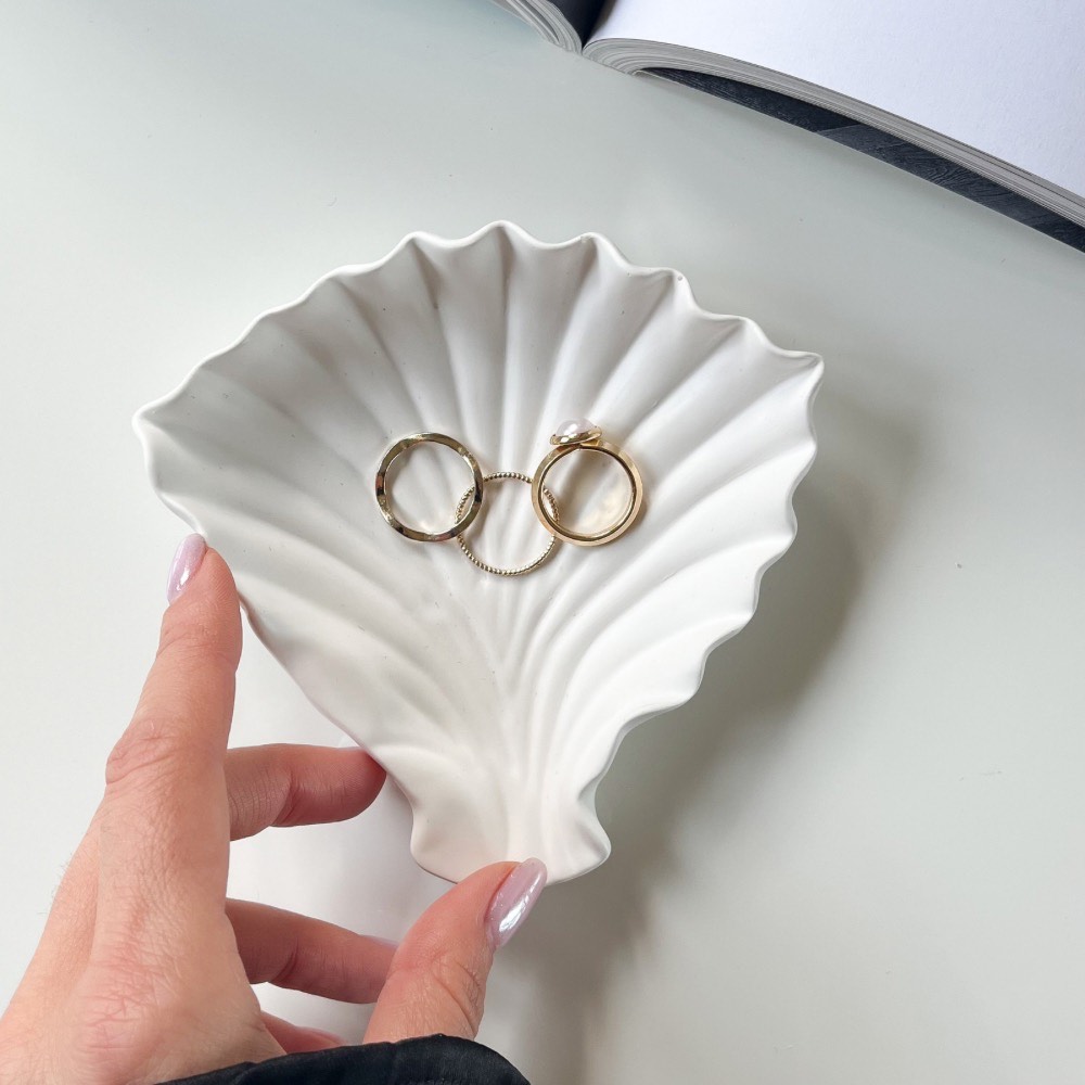 Prawdziwa piękność – subtelna podstawka muszla to elegancka dekoracja na drobiazgi, pierścionki, czy inną biżuterię. Przyciąga wzrok swoją estetyką i jakością. Idealny pomysł na prezent.