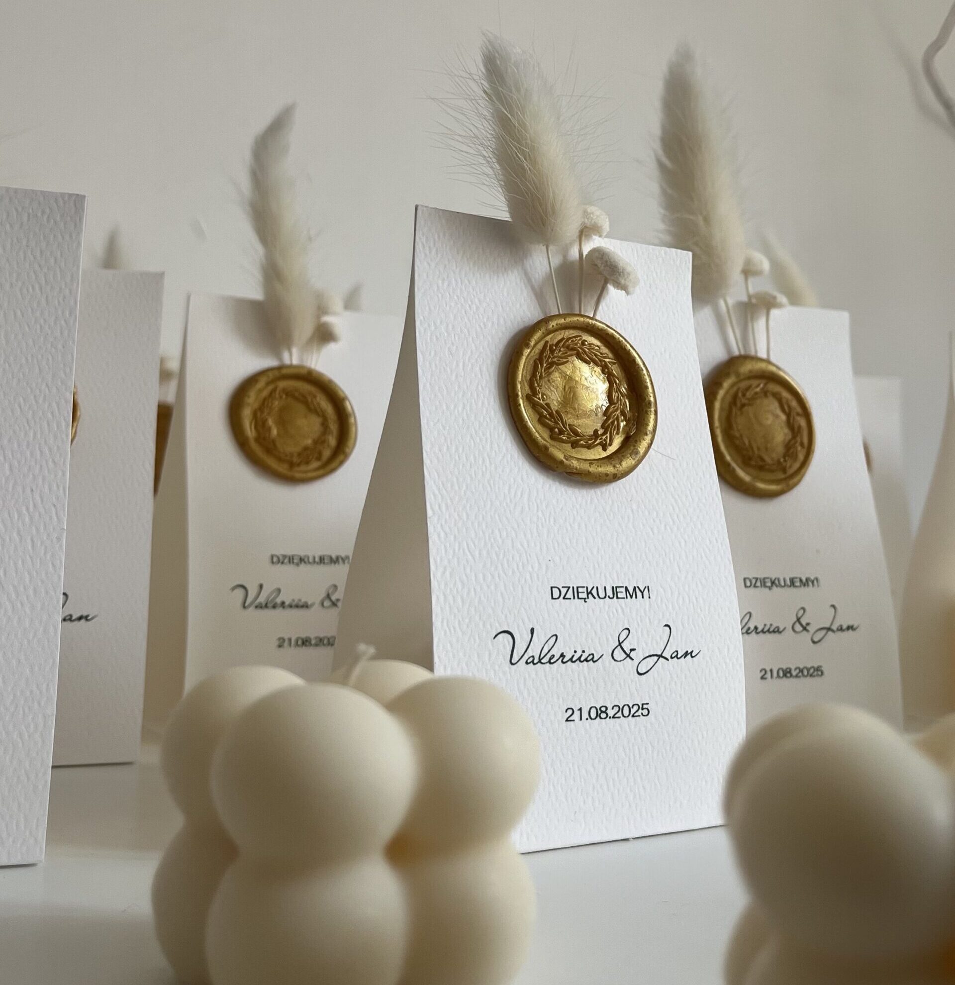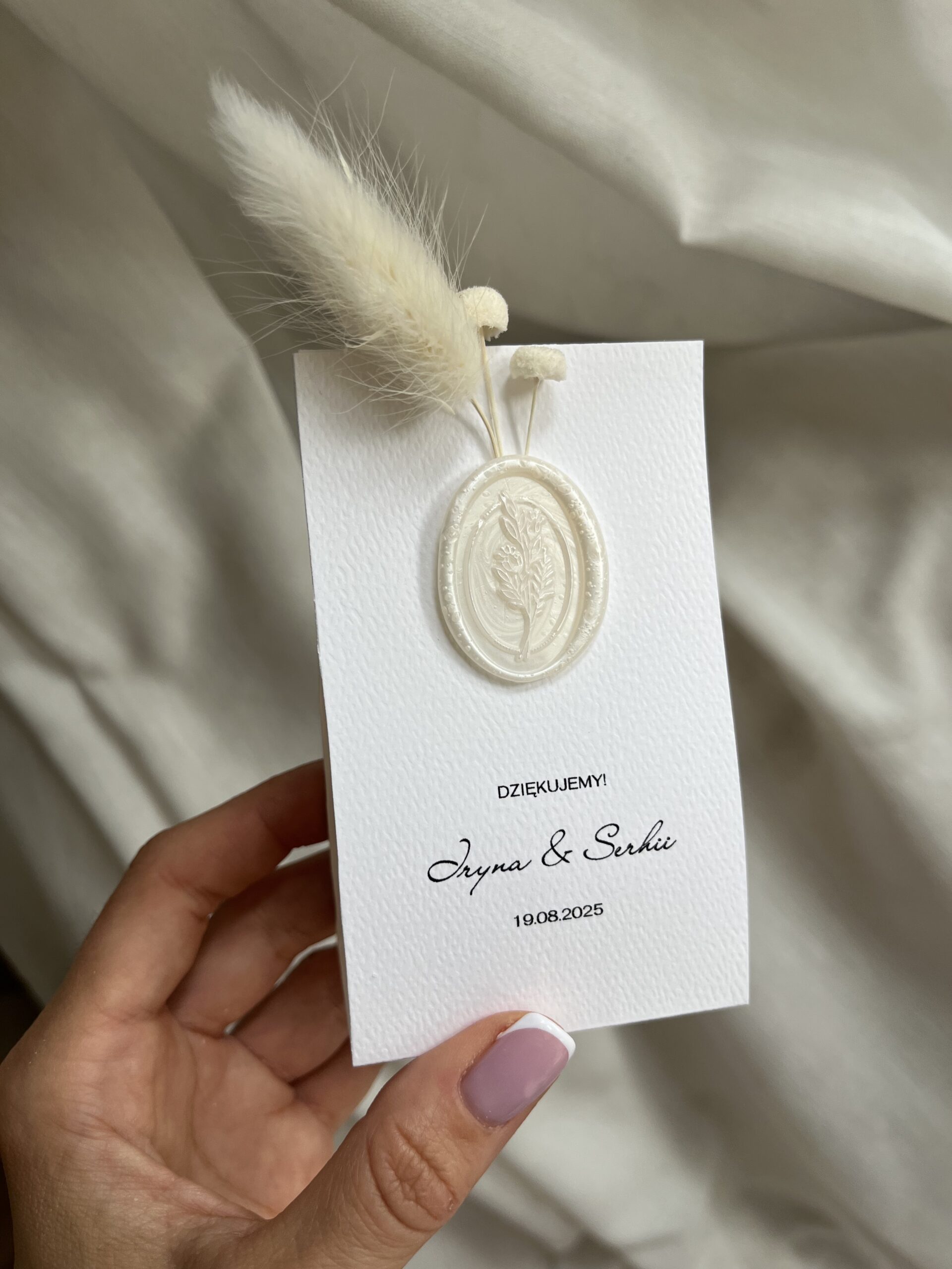 Minimalistyczne i niezwykle eleganckie podziękowanie za obecność w Waszym wielkim dniu! ♡ W połączeniu z suszkami mocno wpisuje się w klimat boho!